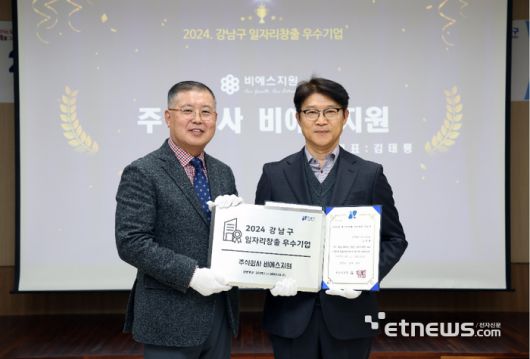 강남구는 지난 1년간 (2023년 10월 ~ 2024년 9월)의 고용 실적, 경영 안정성 및 고용환경 우수성 등을 다각도로 평가해 우수한 기업을 발굴하고 인센티브를 지원하는 인증 평가제도를 운영중이다. 이번에 선정된 곳은 20개 기업이다. 비에스지원은 사회공헌도 등 다양한 평가 항목에서 우수한 평가를 받으며 우수기업에 선정됐다.