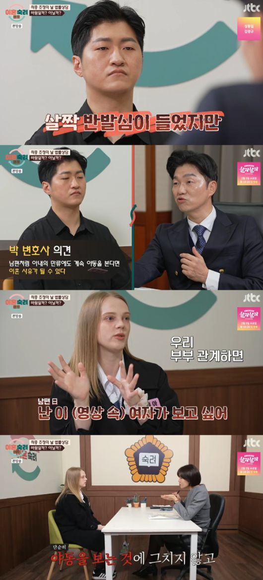 양나래 변호사는 "보는 거 자체가 이혼 사유가 되진 않는다"라고 알렸다.