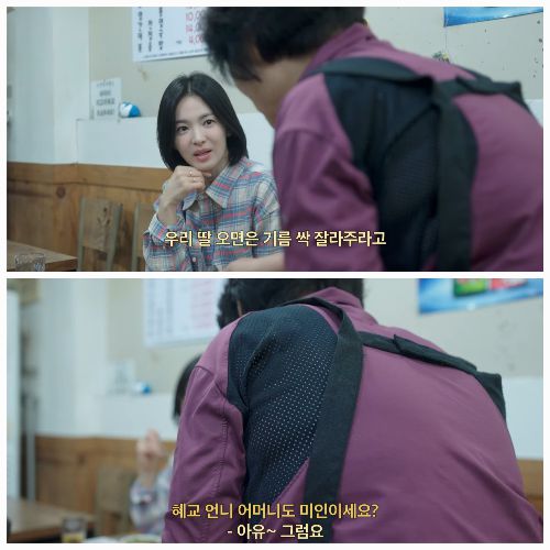 곱창집 사장님 역시 송혜교의 어머니를 언급하며 “정이 많으신 분”이라고 전했다. 이어 “우리 딸 오면 기름 싹 잘라줘라”라는 송혜교 어머니의 세심한 당부를 공개해 눈길을 끌었다. 이에 송혜교는 “엄마가 외향적이고 즉흥적인 걸 좋아한다. 나랑 완전 다르다”며 미소를 지었다.
