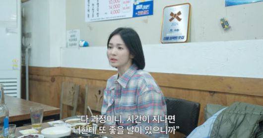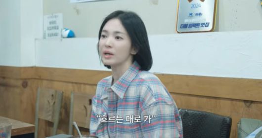 강민경은 "딱 보면 쭉 간 것 처럼 보인다"고 하자 송혜교는 "나름 많은 일 있었다, 항상 좋은 쪽으로만 생각한다"며 "빨리 잊으려 한다 이미 터졌으면 '이미 지나가고 있잖아' 싶다"고 했다. 송혜교는 "안 좋은 일 없으면 좋지, 모든 분들한테"라며 "어릴 때 엄마가 흐르는 대로 냅두라고 해 상황 나쁘게 가더라도 벌써 흘렀기 때문에, 네가 막지 못한다고 했다"고 말했다.