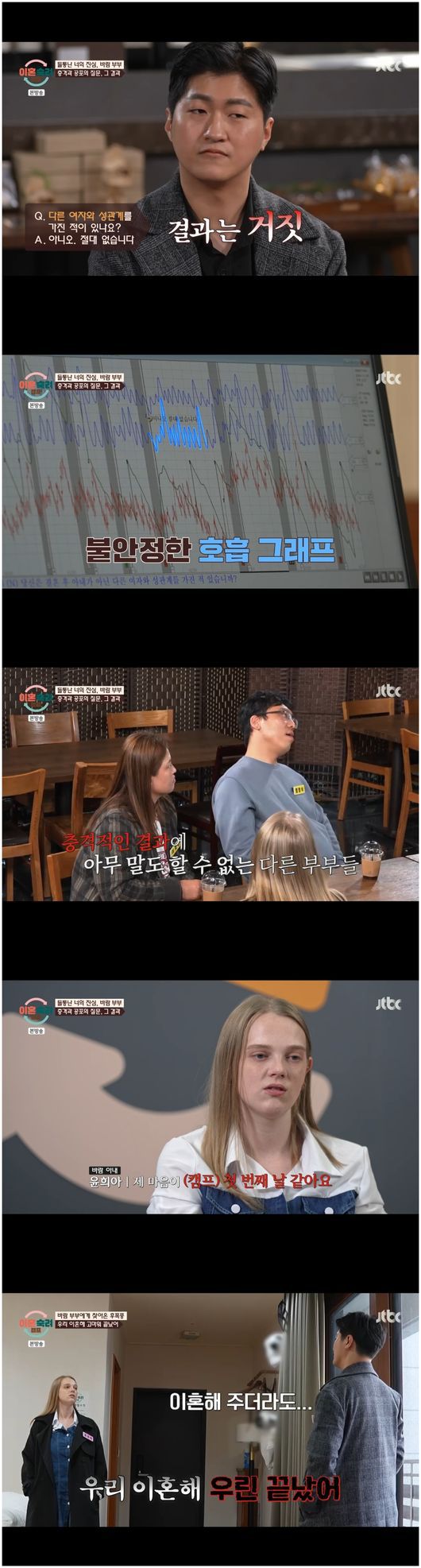 16일 방영한 JTBC ‘이혼숙려캠프’에서는 심리 생리 검사를 통해 최종 조정 전 서로 대화를 나누는 부부의 모습이 그려졌다.