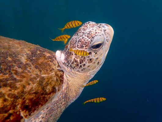 말레이시아 사바주 가야섬 바다거북과 물고기의 공생 |