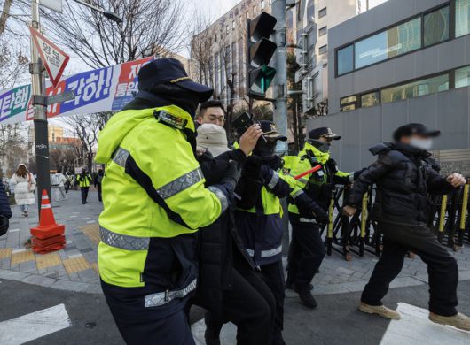 오후들어 지지자들이 서부지법 앞으로 모여들면서 질서가 흐트러지자 경찰은 지지자들에게 “집시법 11조 위반이니 (신고된) 집회장소로 이동해달라”고 연신 경고했다. 이에 일부 지지자가 “왜 집회를 열지 못 하게 하느냐. 경찰이 민주당에 동조하는 것이냐”며 격렬하게 항의하자 중재에 나선 대화경찰이 진땀을 빼기도 했다.