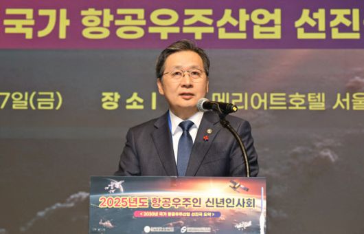 2025년도 항공우주인 신년인사회에 참석한 윤영빈 우주항공청장이 신년사를 하고 있다. |