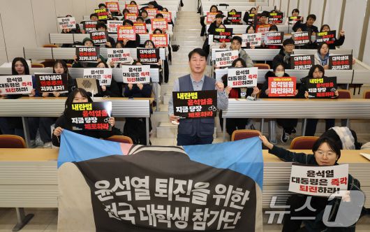 (서울=뉴스1) 이동해 기자 = 양경수 민주노총 위원장이 17일 서울의 한 대학 내 강의실에서 열린 윤석열 퇴진 3차 대학생 시국강연에 앞서 참석자들과 기념촬영을 하고 있다. 2025.1.17/뉴스1eastsea@news1.krCopyright ⓒ 뉴스1. All rights reserved. 무단 전재 및 재배포, AI학습 이용 금지.
