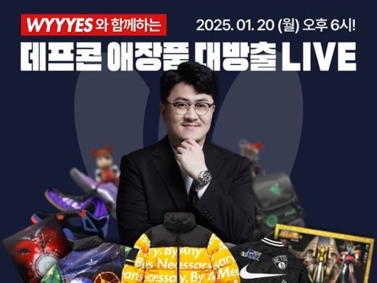 래퍼 겸 방송인 데프콘이 라이브 플랫폼 ‘와이스’에서 오는 1월 20일 오후 6시, 그동안 모아왔던 각종 애장품들을 라이브로 판매한다고 직접 운영하는 유튜브 채널 ‘데프콘TV’를 통해 지난 15일 밝혔다.