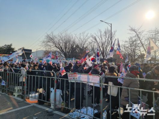 윤석열 대통령이 내란수괴 혐의로 체포된 사흘째인 17일 지지자와 보수단체가 집회를 이어가고 있다.