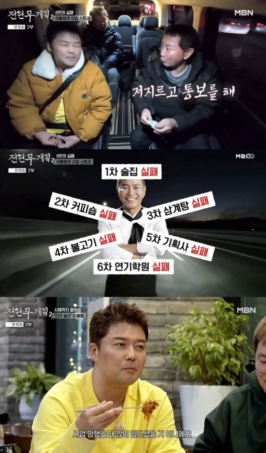 현재 천안시에서 짬뽕집을 운영하고 있는 이봉원은 전현무의 질문에 그동안 총 6개의 사업에 실패했다고 밝혔다. 결혼 전 첫 사업이었던 술집은 당시 생겨버린 심야영업 규제로 망했고, 두 번째 카페와 세 번째로 삼계탕집은 입점해 있던 백화점이 문을 닫으면서 망했다고.