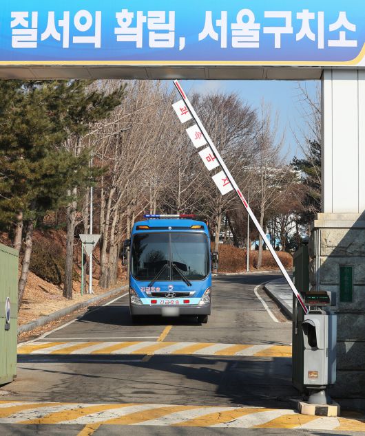 내란 우두머리 혐의로 체포된 윤석열 대통령이 고위공직자범죄수사처의 출석 조사 요구에 이틀 연속 불응하기로 한 17일 경기도 의왕시 서울구치소에서 호송버스가 나오고 있다. 연합뉴스 |