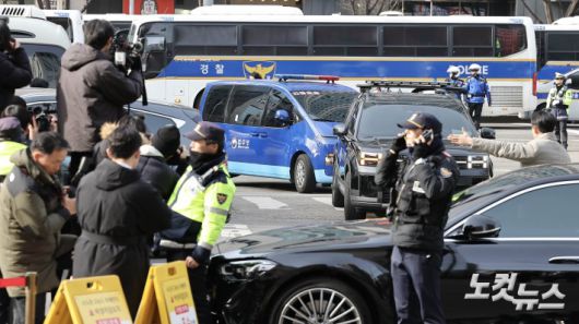 내란 수괴와 직권남용 등의 혐의를 받는 윤석열 대통령의 구속 전 피의자 심문(영장실질심사)이 열리는 18일 서울 마포구 서부지법에 윤 대통령이 탑승한 호송차량이 도착하고 있다.저작권자 © CBS 노컷뉴스 무단전재 및 재배포 금지
