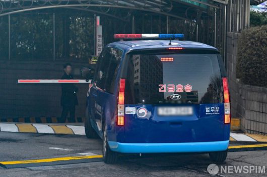 [서울=뉴스핌] 김학선 기자 = 내란 우두머리 혐의를 받는 윤석열 대통령이 영장실짐심사를 받는 18일 서울 마포구 서울서부지방법원에 법무부 차량이 진입하고 있다. 2025.01.18 yooksa@newspim.com