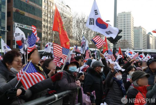 [서울=뉴스핌] 양윤모 기자 = 12·3 비상계엄 선포로 '내란 수괴(우두머리)' 혐의로 고위공직자범죄수사처에 체포된 윤석열 대통령이 18일 오후 2시 서울서부지방법원에서 열리는 구속 전 피의자 심문(영장실질심사)에 출석한 가운데, 윤 대통령의 구속을 반대하는 지지자들이 법원 앞 도로에서 집회를 하고 있다. 2025.01.18 yym58@newspim.com