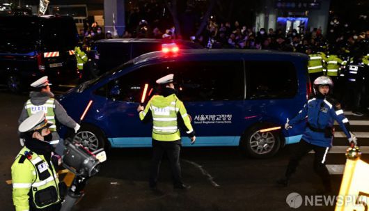 [서울=뉴스핌] 김학선 기자 = 내란 우두머리 혐의를 받고 있는 윤석열 대통령이 18일 오후 서울 서부지방법원에서 열린 구속전 피의자심문을 마친 뒤 법무부 호송차량으로 서울구치소에 돌아가고 있다. 2025.01.18 yooksa@newspim.com