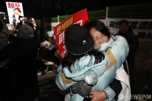 윤석열 대통령 구속 소식에 환호하는 집회 참석자들