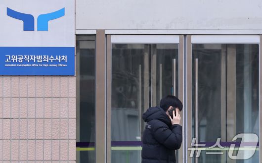(과천=뉴스1) 김성진 기자 = 고위공직자범죄수사처(공수처)가 윤석열 대통령에게 출석을 통보한 19일 오후 경기도 정부과천청사 고위공직자범죄수사처(공수처) 현판 앞으로 한 관계자가 지나가고 있다. 이날 공수처는 윤석열 대통령에게 오후 2시에 출석하라고 요구했지만, 윤 대통령은 응하지 않기로 했다. 공수처는 강제인치(강제연행)나 구치소 방문 조사 등도 검토할 것으로 보인다. 2025.1.19/뉴스1