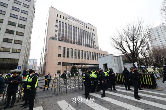 윤석열 대통령 구속영장 발부와 관련해 서울서부지법에서 폭력사태가 발생한 19일 경찰이 서부지법 앞 경계를 강화하고 있다. 정지윤 선임기자 |