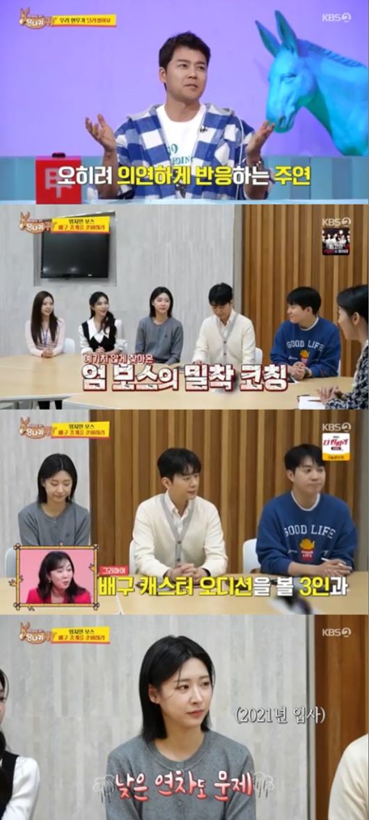 엄지인은 배구 캐스터 오디션을 앞두고 지원자 홍주연, 김진웅, 남현종을 한자리에 모아놨다. 현장 리포터 오디션을 볼 허유원, 정은혜도 참석했다.