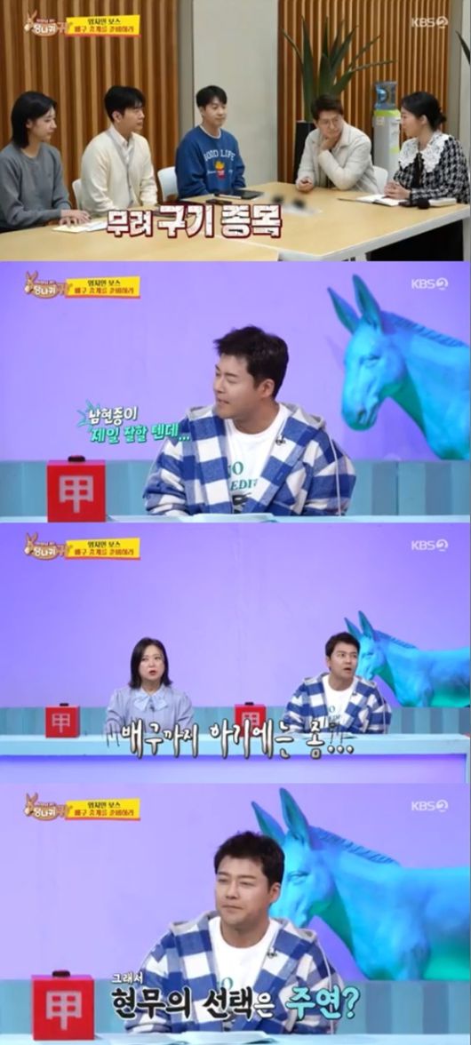 전현무는 김숙이 누가 배구 캐스터로 잘 맞는 것 같은지 묻자 "확실한 건 진웅이는 아니다. 남현종이 잘할텐데 배구까지 하기에는 과부하 아닌가"라며 홍주연을 지목했다.