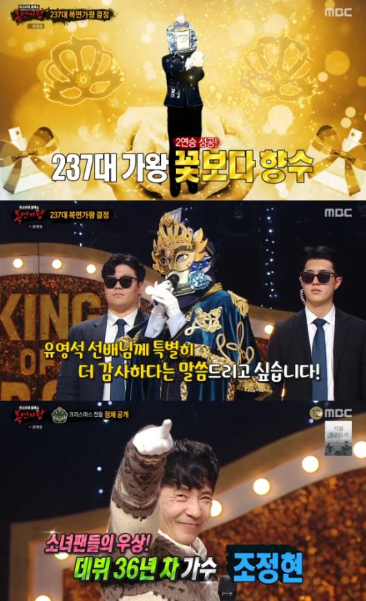 [조이뉴스24 박진영 기자] '복면가왕' 꽃보다 향수가 2연승을 차지했다. 모두의 극찬을 얻은 크리스마스 캔들의 정체는 조정현이었다.
