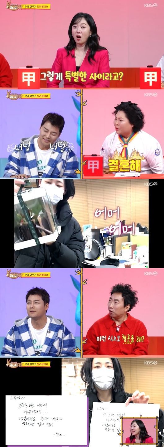 선물을 받은 홍주연은 "달콤한 케이크와 함께 따스한 연말 보내겠다"라고 감사 인사를 전했다. 김숙은 케이크를 먹는 홍주연을 보고 "반지 있는거 아니냐?"라고 의심했고, 때마침 석근자인 허유원 아나운서가 등장했다. 그는 전현무의 손편지를 보고 입을 틀어막았고, 전현무는 "논란 생기겠다"고 우려했다.