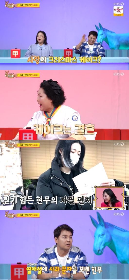 전현무는 "둘이 따로 만났냐"는 김숙에 "아니다. 크리스마스이브 때 저도 숙직한적 있다. 너무 비참하고 쓸쓸한거다. 혼자 아나운서실 지키면서 문자한통 안오고. 옛날생각 나고 짠하더라"라고 케이크를 선물한 이유를 설명했다. 케이크를 받은 홍주연은 "달콤한 케이크와 함꼐 따스한 연말 보내겠다"고 전현무에게 영상편지를 보냈고, 케이크를 먹는 홍주연을 보며 김숙은 "반지 있는거 아니냐"고 의심해 웃음을 안겼다.