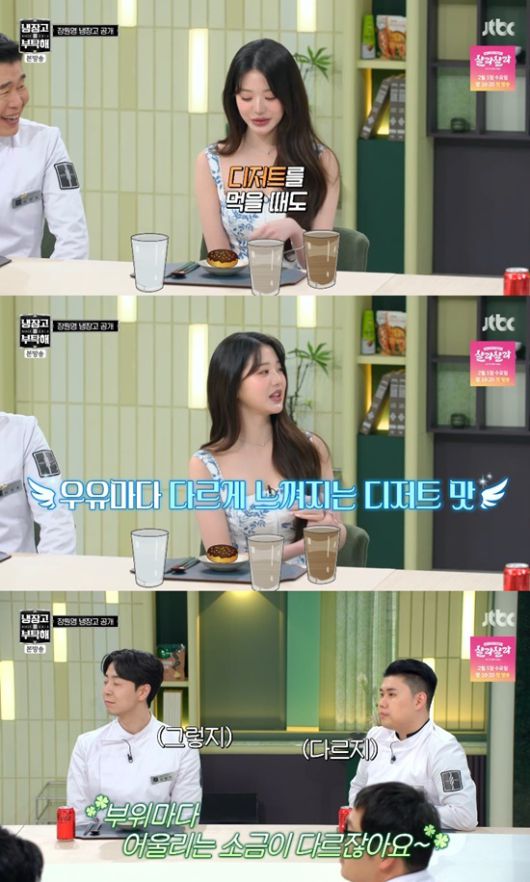 장원영은 "디저트를 먹을 때 각각 다른 종류의 우유를 같이 따른다"면서 "디저트를 먹을 때 우유와의 조합에 따라 맛이 또 달라진다"고 설명했다.