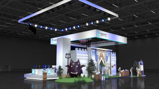올해 그라비티 커뮤니케이션즈(GVC)의 타이베이 게임쇼 부스 디자인은 프론테라 남문 조경을 컨셉으로 밝은 느낌과 그라비티의 시그니처 컬러인 블루, 화이트를 사용해 브랜드 이미지를 강조했다. 이와 함께 대형 데비루치 조형물을 배치해 부스 주목도를 한층 높였다.