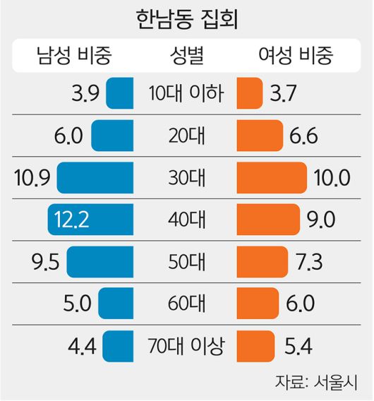 ◆한남동엔 30·40 男, 여의도엔 20·30 女