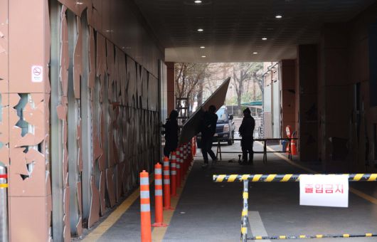 산산조각난 대한민국 법치 20일 서울 마포구 서울서부지방법원에서 작업자들이 지난 19일 새벽 윤석열 대통령 지지자들의 난입 사태로 파손된 외벽을 복구하고 있다. 서부지법은 이날부터 정상 운영에 들어갔지만 차량 운행은 중단됐고, 보안 인력도 대폭 강화했다. 한주형 기자 |