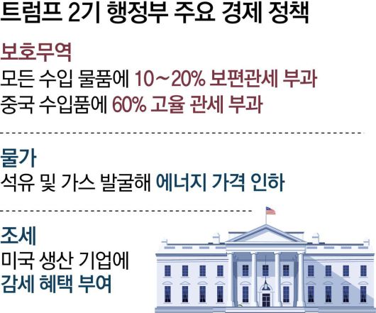 지난해 11월 미 대선에서 트럼프가 승리한 이후 S&P500지수를 비롯한 다우존스산업평균지수나 나스닥지수 등 미국 3대 지수가 역대 최고치를 기록한 것도 트럼프 2기 출범에 대한 기대감이 선반영된 효과가 크다.