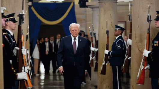 이후 이날 트럼프의 취임 선서를 주도할 존 로버츠 대법원장이 대법관들과 함께 들어섰다. 그리고 트럼프의 직계 자녀들이 등장했고, 현 ‘퍼스트 레이디’와 ‘세컨드 젠틀맨’인 질 바이든 여사와 더그 엠호프가 같이 입장했다. 바이든과 해리스는 그 다음에 나란히 등장했다. 마지막으로 밴스 부통령에 이어, 트럼프가 제일 마지막에 주먹을 들어보이며 11시 43분쯤 입장하면서 공식 취임식이 시작됐다.
