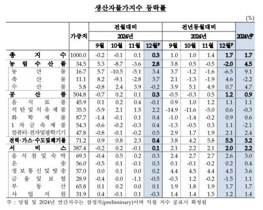 한국은행이 오늘(21일) 발표한 지난해 12월 생산자물가지수는 11월보다 0.3% 오른 119.51로 집계됐습니다.