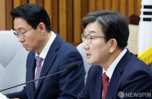 [서울=뉴스핌] 윤창빈 기자 = 권성동 국민의힘 원내대표가 21일 오전 서울 여의도 국회에서 열린 원내대책회의에서 모두발언을 하고 있다. 2025.01.21 pangbin@newspim.com