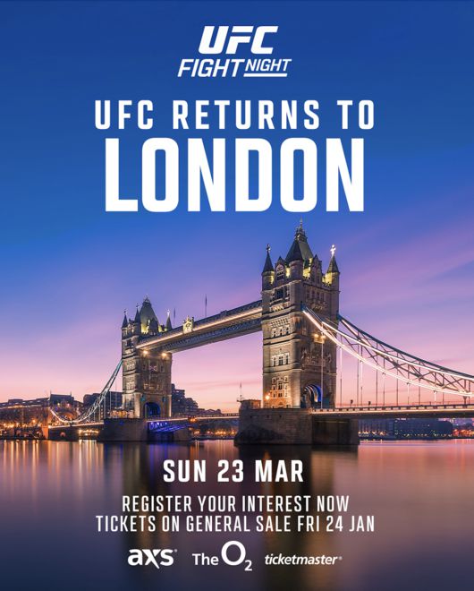 큰 기대를 받는 이번 대회는 오는 24일 오후 7시부터 AXS와 티켓마스터에서 티켓 판매를 시작한다. 파이트클럽 회원은 오는 22일부터 UFC 런던 대회 페이지에서 관심 등록해 오는 23일 오후 7시부터 우선적으로 예매할 수 있다.