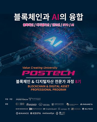 포스텍(POSTECH)이 블록체인과 디지털 자산, 밈코인, STO, AI 분야에 전문적인 지식을 쌓기 원하는 이들을 위한 블록체인 및 디지털자산 전문가 과정 8기 수강생을 모집한다.