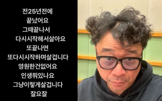 이어 “또 끝나면 또다시 시작하며 살 겁니다. 영원한 건 없어요”라며 “인생 뭐 있나요. 그냥 이렇게 살 겁니다. 잘요 잘”이라고 전했다.