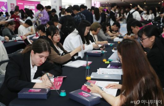 지난해 5월23일 오후 부산 해운대구 영화의전당에서 열린 '외국인 유학생 채용박람회'에서 외국인 유학생들이 이력서를 작성하고 있다. 이번 박람회는 법무부 주관의 지역특화형 비자 지역우수인재 유형(F2R)과 연계한 채용박람회로 부산형 글로벌 인재 양성과 '유학하기 좋은 도시 부산'을 만들기 위해 마련됐다. 2024.5.23/뉴스1 |