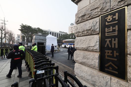현직 대통령으로서 처음으로 헌법재판소 탄핵심판에 출석하는 윤석열 대통령의 이동 동선이나 포토라인 설치 여부에 대해 헌재가 공개하지 않기로 했다.