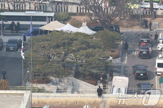 (서울=뉴스1) 김도우 기자 = 윤석열 대통령이 탑승한 법무부 호송차량이 21일 윤 대통령 탄핵 심판 3차변론기일이 열리는 서울 종로구 헌법재판소로 향하고 있다. 2025.1.21/뉴스1pizza@news1.krCopyright ⓒ 뉴스1. All rights reserved. 무단 전재 및 재배포, AI학습 이용 금지.