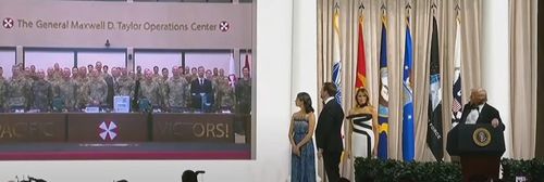 (워싱턴=연합뉴스) 조준형 박성민 특파원 = 도널드 트럼프 미국 대통령은 20일(현지시간) 취임식 이후 열린 군 관계자들을 위한 무도회에서 경기도 평택 소재 미군기지인 캠프 험프리스의 주한미군 장병들과 영상 통화를 했다.