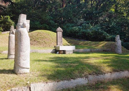 묘역은 2단으로 조성됐으며 윗단의 봉분 앞에는 묘표, 혼유석, 상석이 세워져 있고 아랫단의 좌우에는 문석인 2쌍이 마주하고 있다.