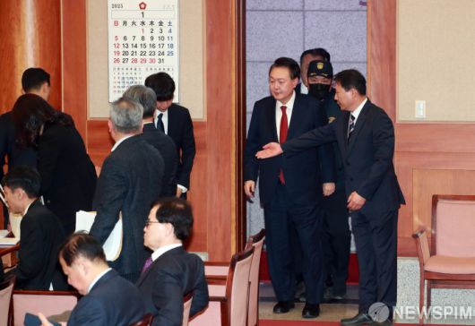 [서울=뉴스핌] 사진공동취재단 = 윤석열 대통령이 21일 오후 서울 종로구 재동 헌법재판소에서 열린 탄핵심판 3차 변론기일에 출석하고 있다. 2025.01.21 photo@newspim.com