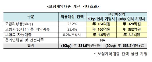 올 하반기부터 고금리 보험상품 계약자나 60세 이상 고령자 등은 보험계약대출을 받을 때 우대금리를 적용받는다. 금융당국은 이를 통해 연간 최소 330억원 가량의 이자 감면 효과가 발생할 것으로 내다봤다.
