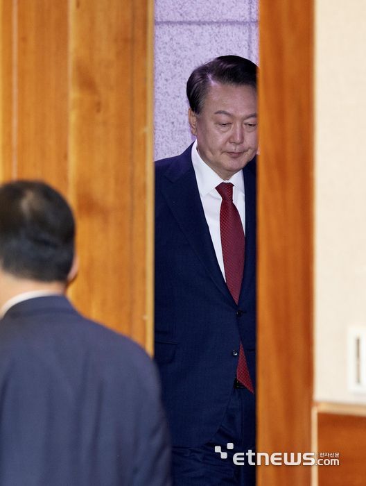 윤석열 대통령이 21일 오후 서울 종로구 헌법재판소 대심판정에서 열린 탄핵심판 3차 변론기일에 참석하고 있다. 사진공동취재단 이동근 기자 foto@etnews.com [Copyright © 전자신문. 무단전재-재배포금지]