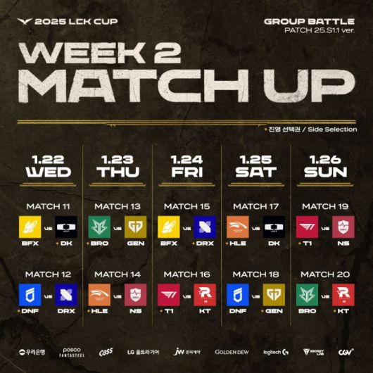 ▲ 2025 LCK컵 2주 차 대진 및 일정
