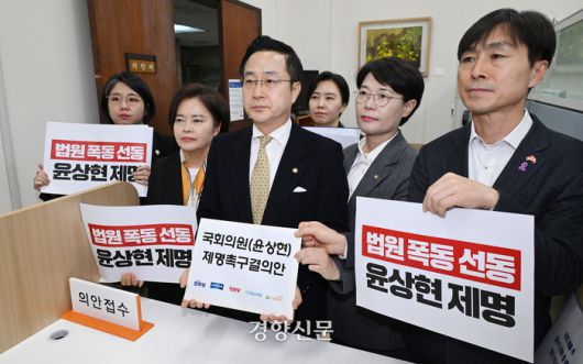 결의안은 “윤 의원의 ‘월담 훈방’ 발언은 시위대를 폭도로 돌변하게 하는 기폭제 역할을 했다”며 “해당 발언은 유튜브를 통해 삽시간에 전파돼 법원을 상대로 한 습격과 폭력을 정당화하는 논리로 제공됐다”고 주장했다.