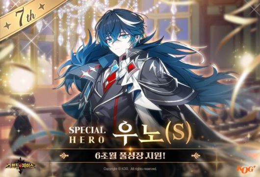 코그(KOG)는 오늘(21일) ‘그랜드체이스 모바일’의 서비스 7주년을 맞아 신규 스페셜 영웅 ‘우노’를 출시했다고 밝혔다. 스페셜 영웅 ‘우노’는 특별한 성장 지원을 받는 SS등급 저격형 영웅이다.
