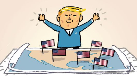 ▶트럼프가 연일 파나마운하 회수, 그린란드 합병 등을 주장하고 있다. 미국과 멕시코, 쿠바 사이 ‘멕시코만’ 이름도 ‘아메리카만’으로 바꾸겠다고 한다. 취임사에서 트럼프는 “미국 우주인들이 화성에 성조기를 꽂아 우리의 ‘명백한 운명’을 별들에까지 펼치겠다”고 했다. ‘이 세상은 미국을 위해 존재한다’고 믿는 트럼프 같다.