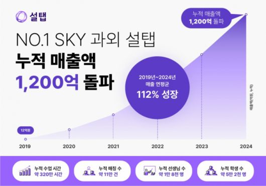 설탭은 '아이패드 SKY과외'로 알려진 중고등 대상 비대면 과외 플랫폼이다. 2019년 6월 국내 최초로 태블릿 PC를 활용한 1:1 온라인 과외 서비스를 출시한 이후 현재까지 △누적 매출액 1239억원(5년간 연평균 매출 성장률 112%) △누적 수업 진행 시간 320만여시간 △누적 1만8000여명의 SKY 출신 검증된 튜터풀 보유 △5만명이 넘는 누적 학생 수 △고도화된 매칭 알고리즘을 통한 튜터 연결 11만건 등 등의 성과를 올렸다.
