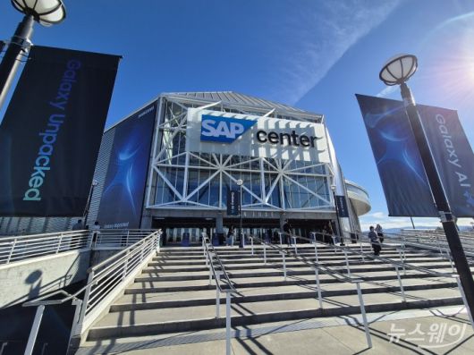 인근에 애플 본사가 위치한 미국 새너제이 SAP센터에 갤럭시 언팩(galaxy unpakced)이 쓰여있는 대형 광고판이 설치됐다. 광고판에는 둥근 모서리 모양의 스마트폰 4대가 겹쳐있는 듯한 파란색 이미지도 확인할 수 있다. '애플파크'와는 차로 약 10여 분 떨어진 이곳은 삼성전자가 갤럭시 S25 시리즈를 공개하는 장소다.